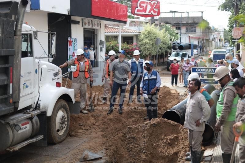 Comapa repara colector sanitario en la Lauro Aguirre de Tampico
