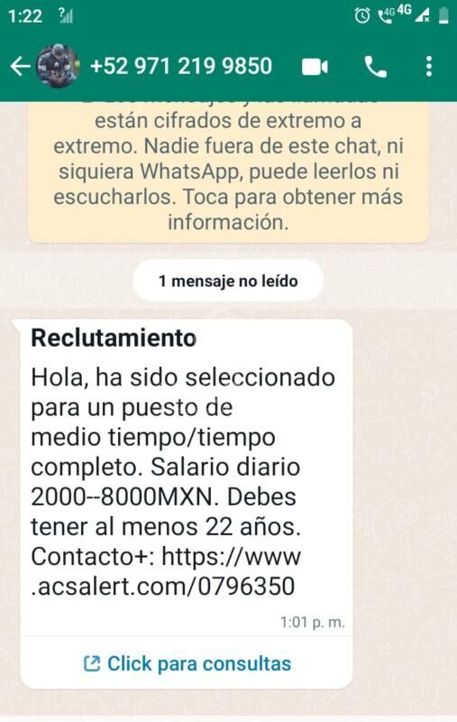 Alerta!! Ofrecen empleo por Whatsapp; no los abran! pueden usurpan tus datos