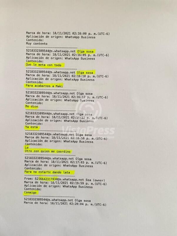 Con todo para acabarnos a Maki” dice Olga Sosa a Carmona Angulo.