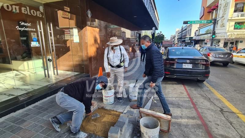 Al efectuar la supervisión de los trabajos de mejoramiento en banquetas y áreas ornamentales de la zona centro de Tampico,…