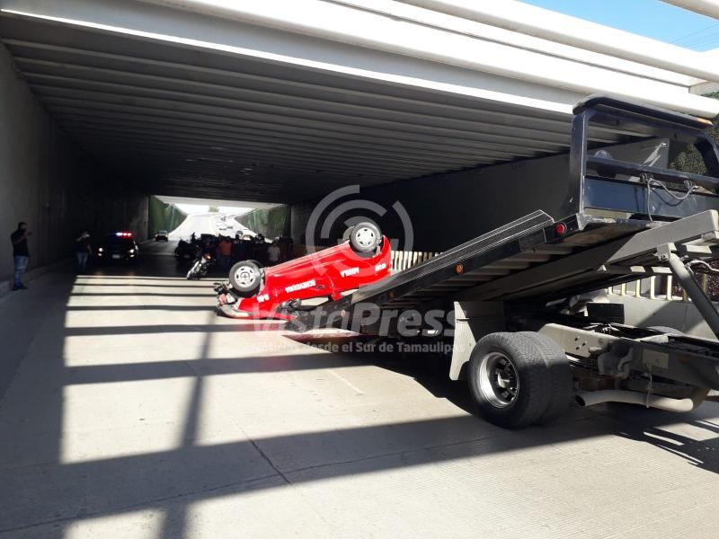 Carro de ruta vuelca en paso deprimido