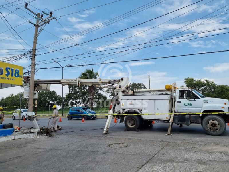 Tráiler tumba poste de CFE; se quedan 2 mil familias sin luz