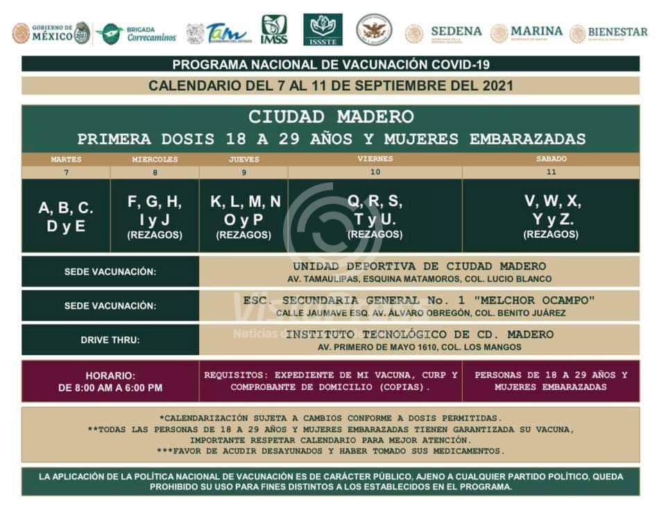 Inicia vacunación para Jóvenes de 18 a 29 años y mujeres embarazadas en Tampico