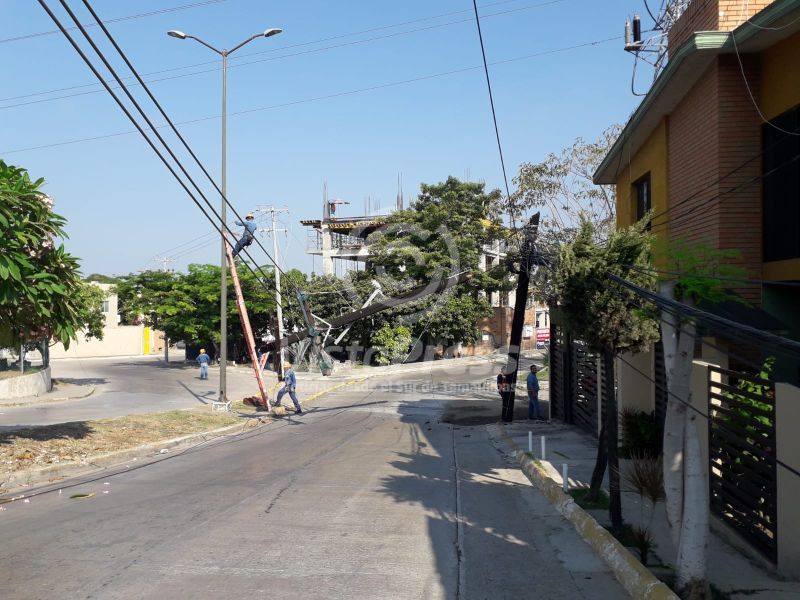 Tampico, Tam. Un poste de madera que se encontraba en mal estado se desplomó, ocasionando daños en otro de concreto,…
