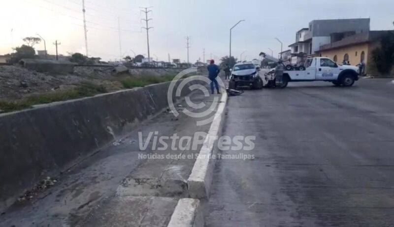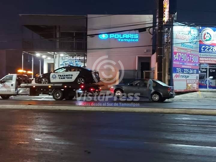 Carro se impacta en un poste por la centran camioneta de Tampico