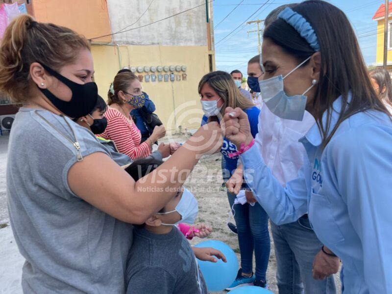 Al efectuar un recorrido por la colonia Tolteca, la candidata del Partido Verde Ecologista a la alcaldía de Tampico, Gema…