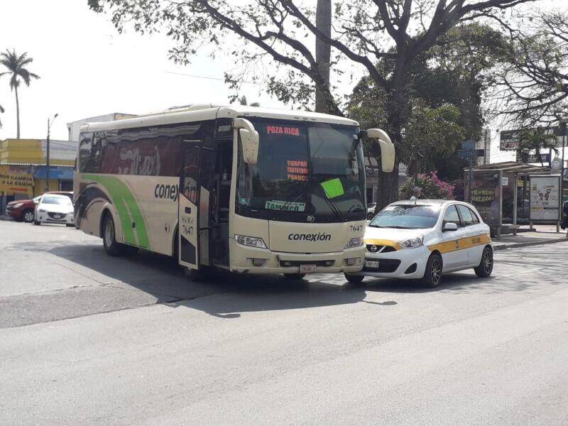 Tampico, Tam. Un autobús foráneo que intentó incorporarse a la Avenida Hidalgo fue impactado por un taxi, resultando por fortuna…