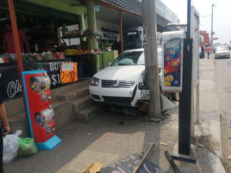 Casi ocasiona una tragedia en el Norte de Tampico; choca su Jetta en poste
