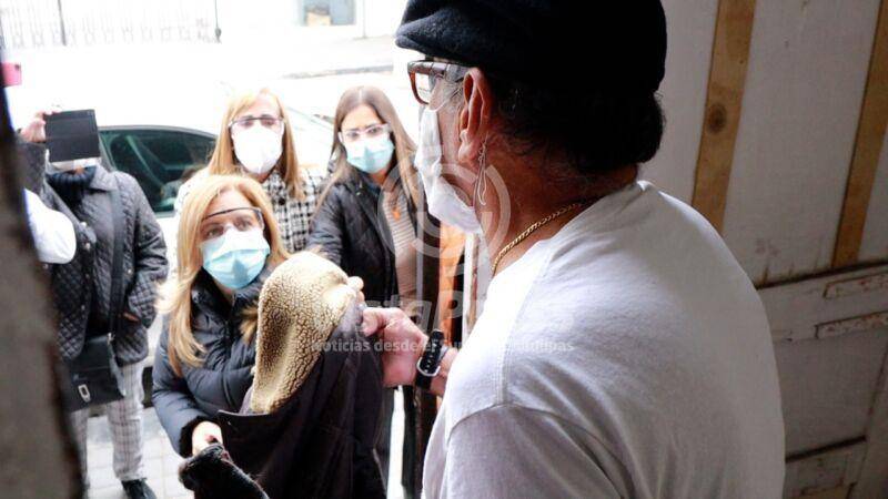 Regala Aida Feres ropa de invierno a indigente de refugio temporal