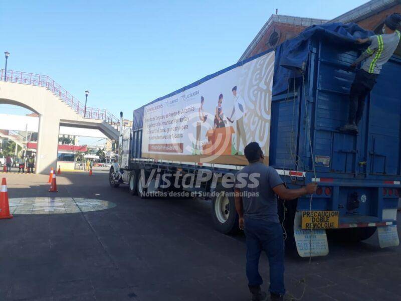 Tampico, Tam.- Un tráiler con comestibles no perecederos, agua y artículos de limpieza salió este miércoles de la Administración Portuaria…