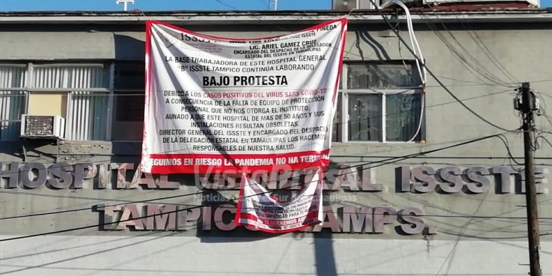 Empleados del ISSSTE colocan manta afuera de hospital; siguen sin insumos