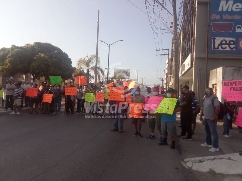 Bloquean pescadores la avenida Hidalgo; toman oficina de Pesca