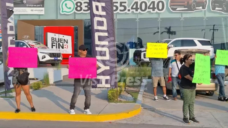 Clienta se manifiesta pacíficamente contra Hyundai Tampico por presunto incumplimiento de garantía