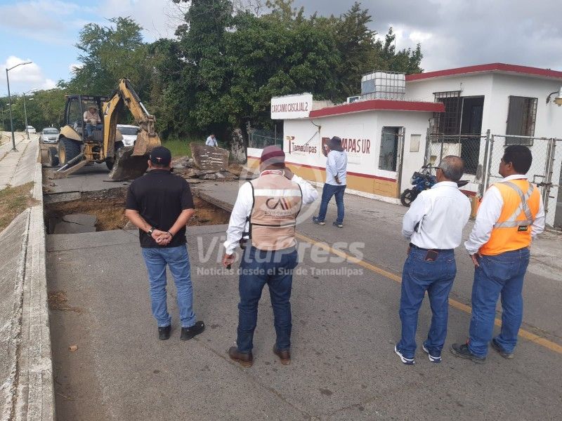 Atiende COMAPA SUR de manera oportuna un socavón en el Bordo de Protección