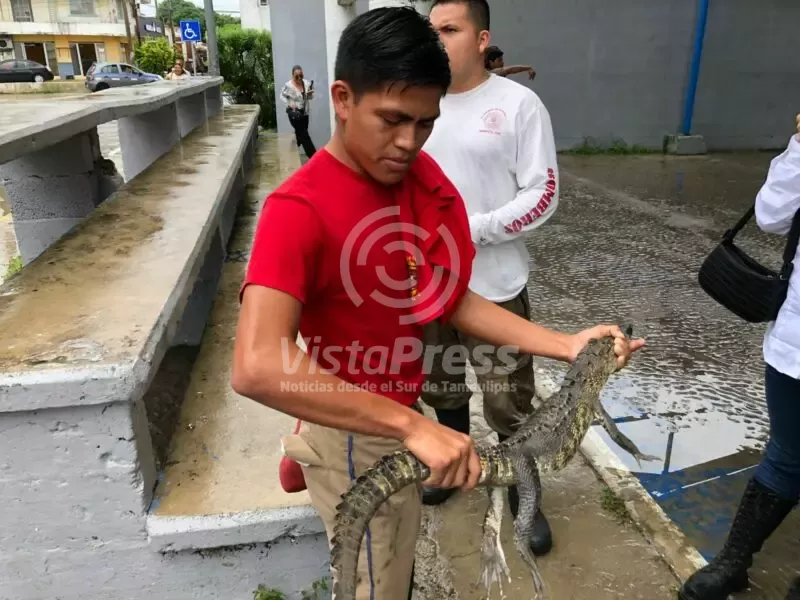 Capturan cocodrilo de casi un metro en la colonia Frente Democrático de Tampico