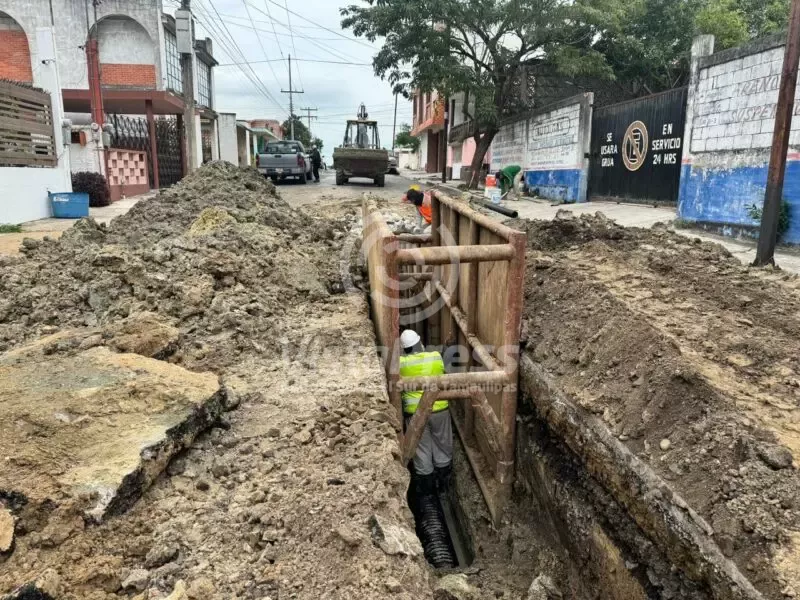 COMAPA SUR rehabilita colector de drenaje en la colonia Candelario Garza de Ciudad Madero