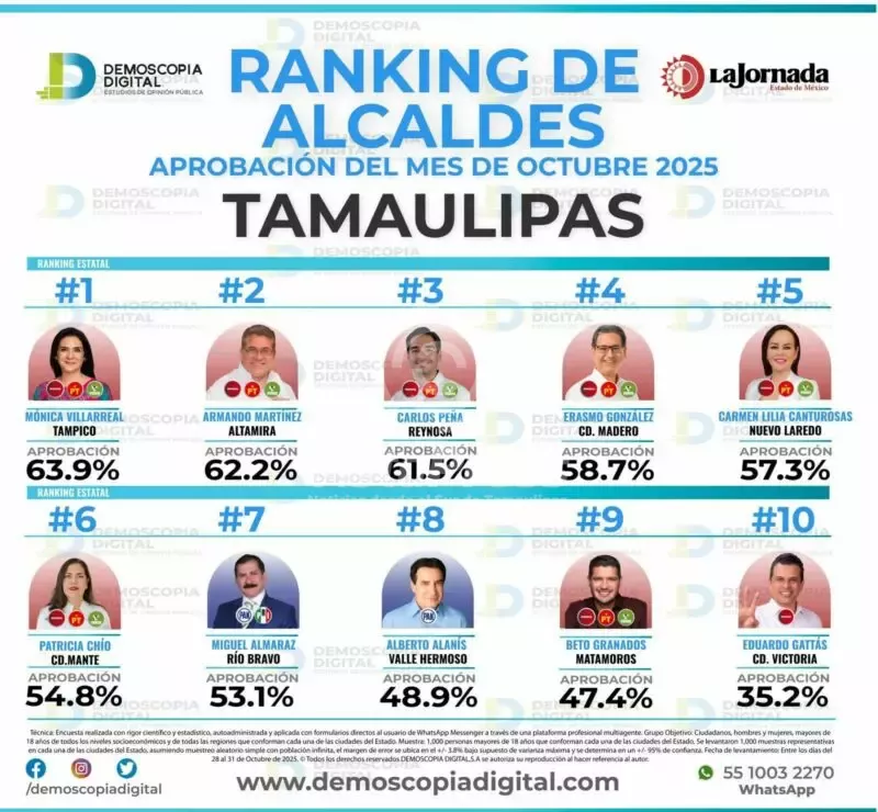 Mónica Villarreal es reconocida como la mejor presidenta municipal de Tamaulipas, según Demoscopia Digital