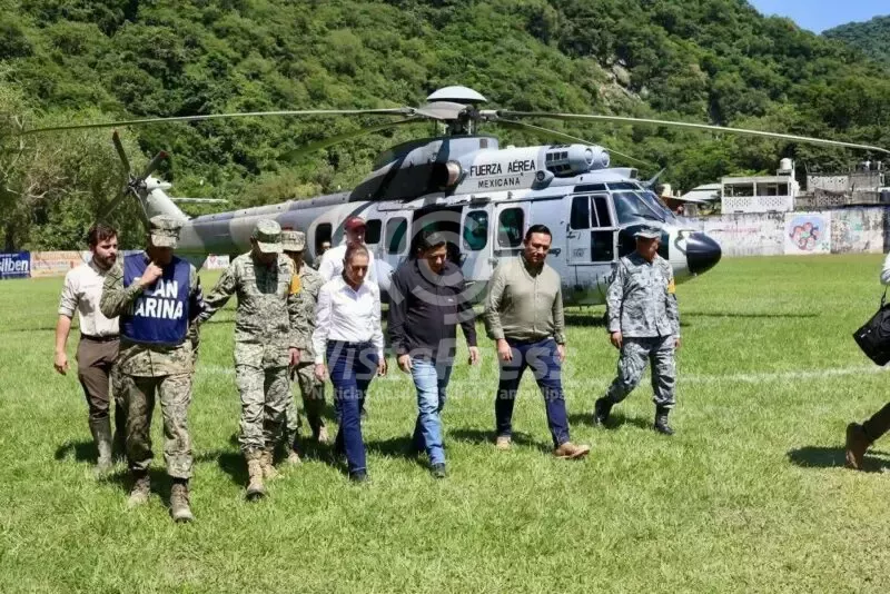 Claudia Sheinbaum hace escala en Tampico; envían ayuda a damnificados por lluvias en San Luis Potosí