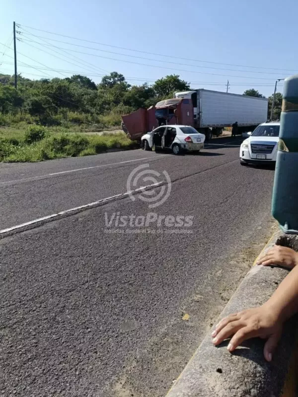 Tráiler choca con vehículo compacto en el Puente Tampico