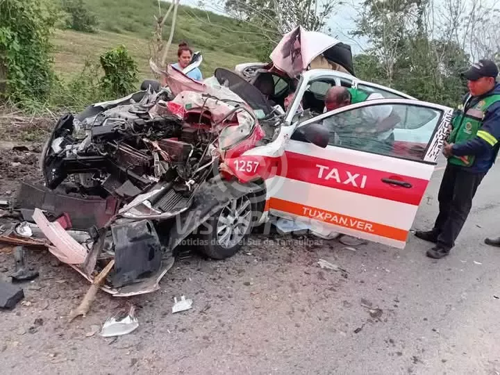 Tamiahua, Ver.-El brutal impacto de un taxi contra un tractor agrícola, dejó como saldo tres personas con lesiones de gravedad.…