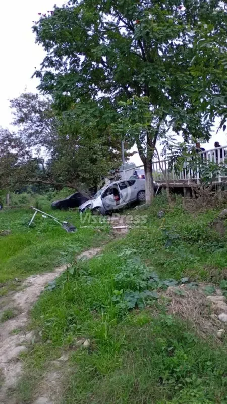 Auto compacto rompe barandal y se precipita a un pequeño canal