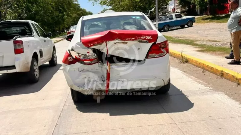 Tempoal, Ver.-Aparatoso choque se registro durante la tarde, entre una camioneta y un vehículo habilitado como taxi, dejando elevados daños…