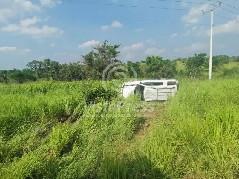 Presunta falla mecánica provoco a la volcadura de una camioneta
