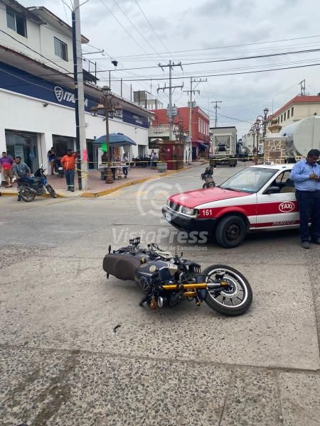 Pánuco, Ver.- Una colisión entre un taxi y un joven que se desplazaba en una motocicleta, se registró en calles…