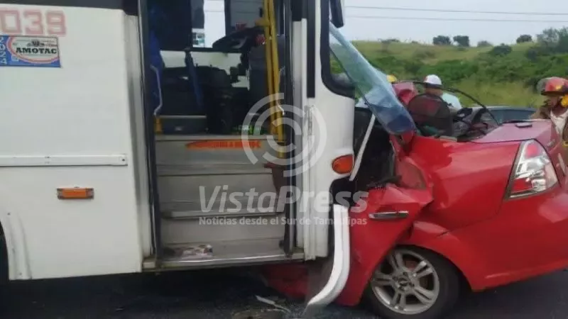 Mueren 5 personas, 3 de ellas menores de edad, tras choque entre automóvil y camión de pasajeros en Alvarado, Veracruz