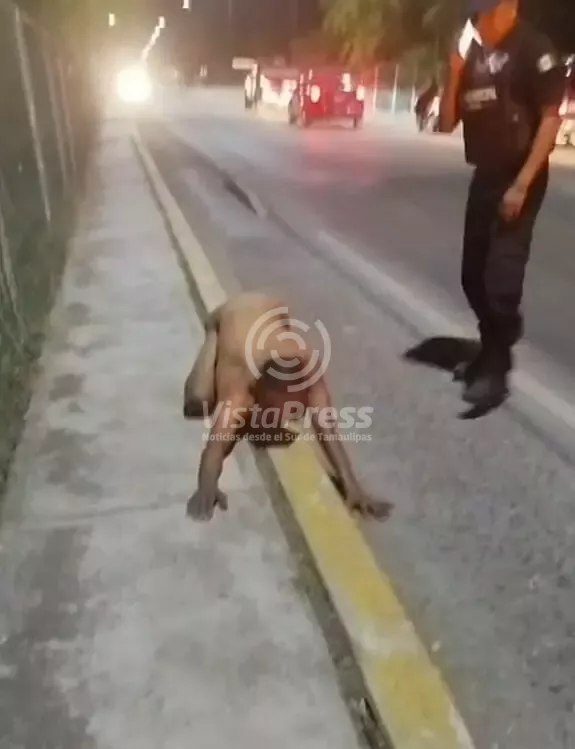 Masculino gateaba desnudo sobre el puente Pánuco