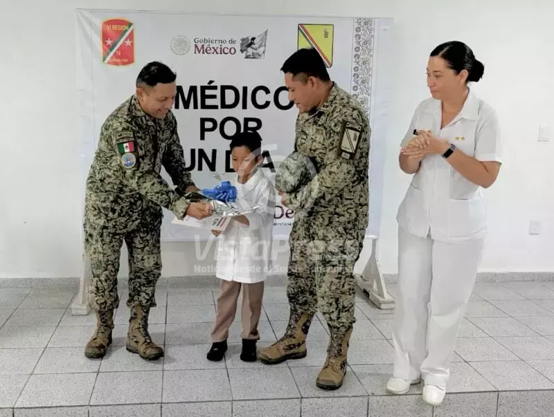 Ejército Mexicano hace realidad el sueño de un niño al convertirse en Médico Militar por un Día» en Tuxpan, Veracruz.