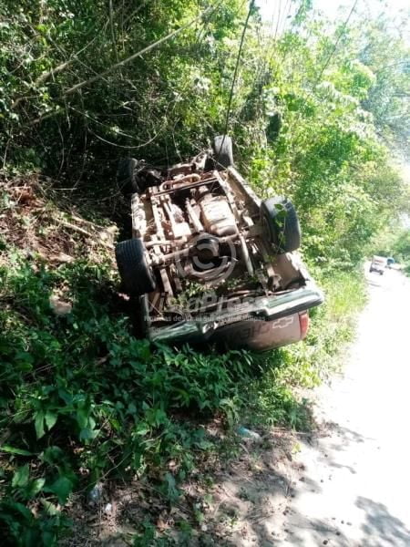 Atlapexco, Hidalgo.Una camioneta quedó volcada a un costado de la carpeta de rodamiento; su tripulantes en apariencia abandonaron la unidad…