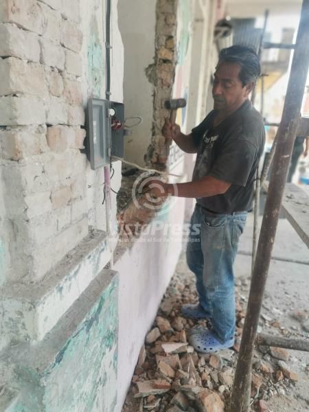 Pueblo Viejo, Ver.-El martillo y cincel se deja escuchar, la pala roza con el suelo, para levantar la mezcla de…