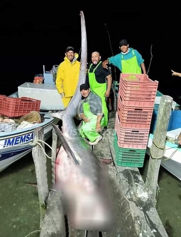 Tampico Alto, Ver.-Pescadores de la comunidad de las "Chacas", capturaron descomunal tiburón "zorro". El enorme cetaceo fue ubicado y capturado…