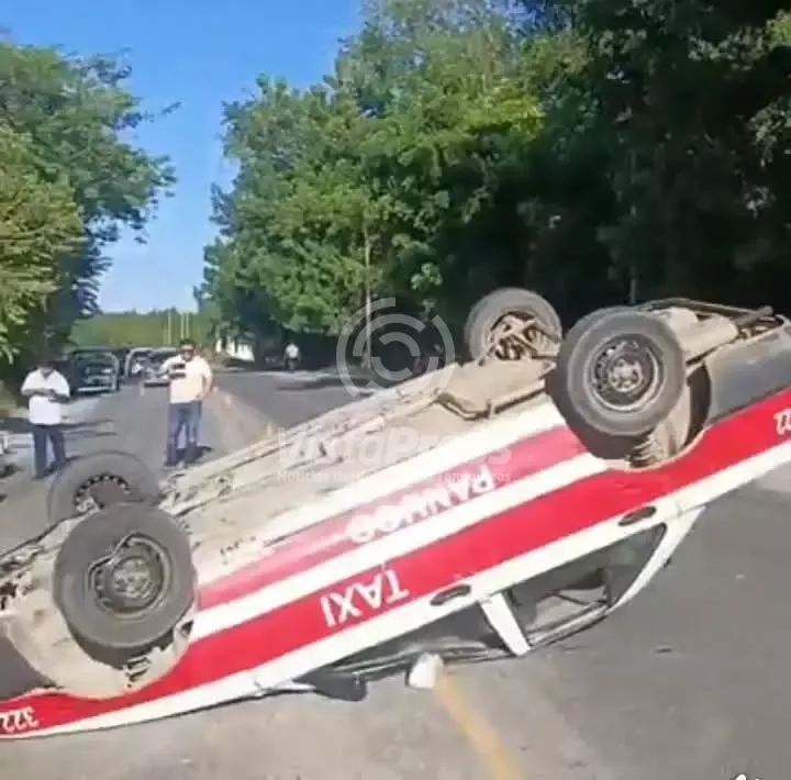 Taxi termina volcado tras impactarse contra un tractor