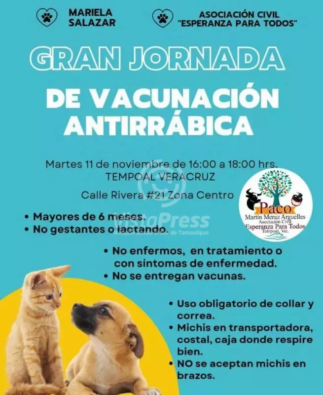 Tempoal, Ver.-Será el día de mañana que se desarrolle la gran jornada de vacunación antirrábica. Este evento es organizado por…