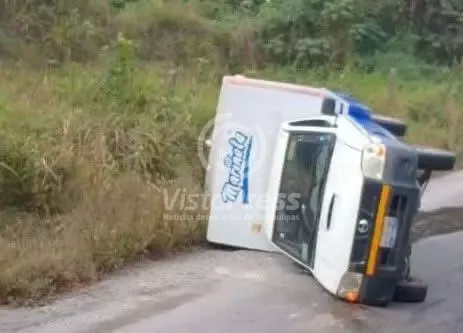 Vuelca vehículo de conocida empresa panadera