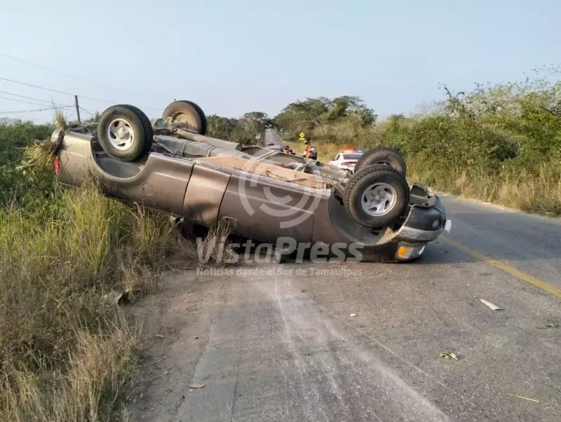 Volcadura de camioneta deja tres personas lesionadas entre ellas dos menores de edad