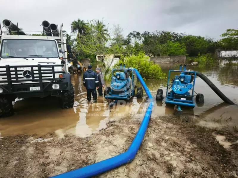 Unen esfuerzos los tres órdenes de gobierno para atender inundaciones en El Moralillo