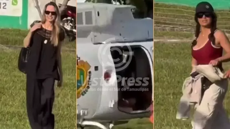 Critican a Rocío Nahle por usar helicóptero oficial para pasear a Salma Hayek y Angelina Jolie y ahora permanece estático