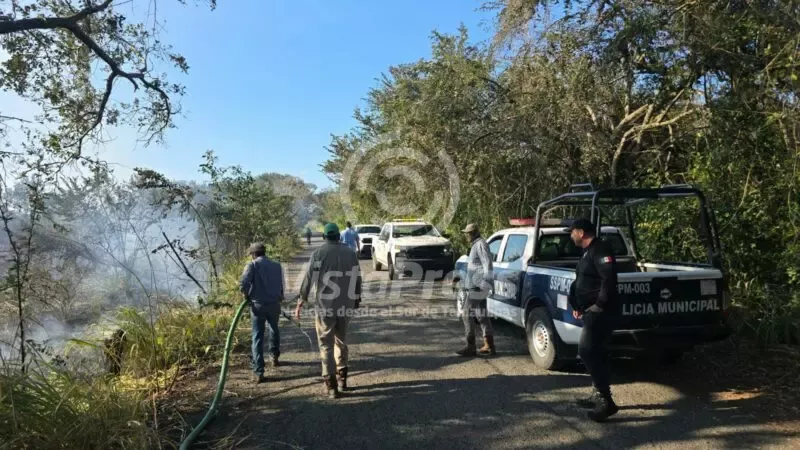 Tampico Alto, Ver.-El incendio de pastizal, en la Brecha Huasteca, provocó la movilización de protección civil de esta localidad. El…