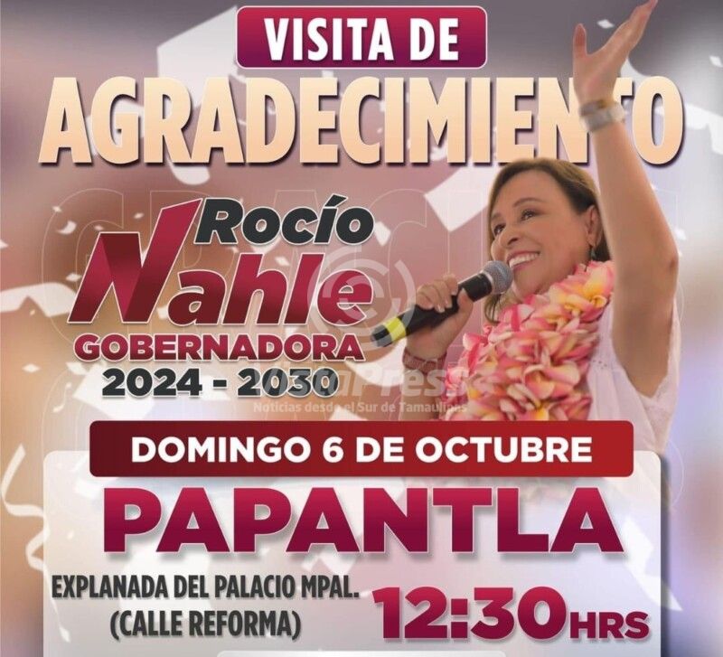 Papantla, Ver.- La gobernadora electa Rocío Nahle, estará en Papantla y Poza Rica este domingo 6 de Octubre. En "la…