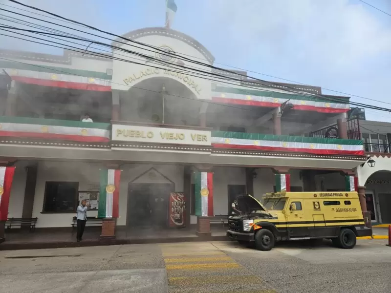 Frente a Palacio Municipal Pueblo Viejo, Ver.- Una camioneta de valores, se incendio en el primer cuadro de la ciudad,…