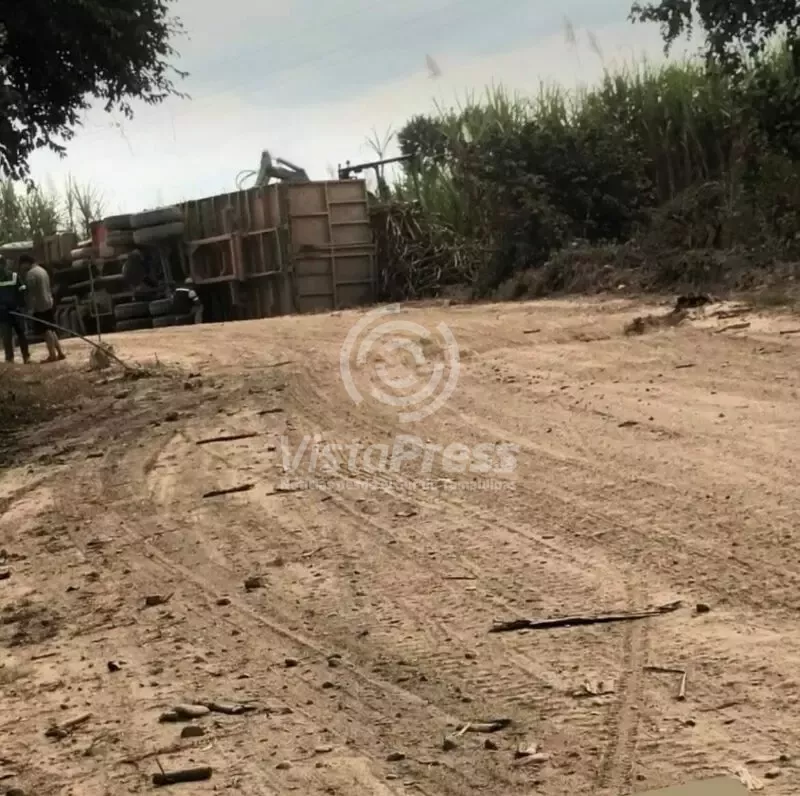 Vuelca un camión cañero en el sector ampliación Palmas reales