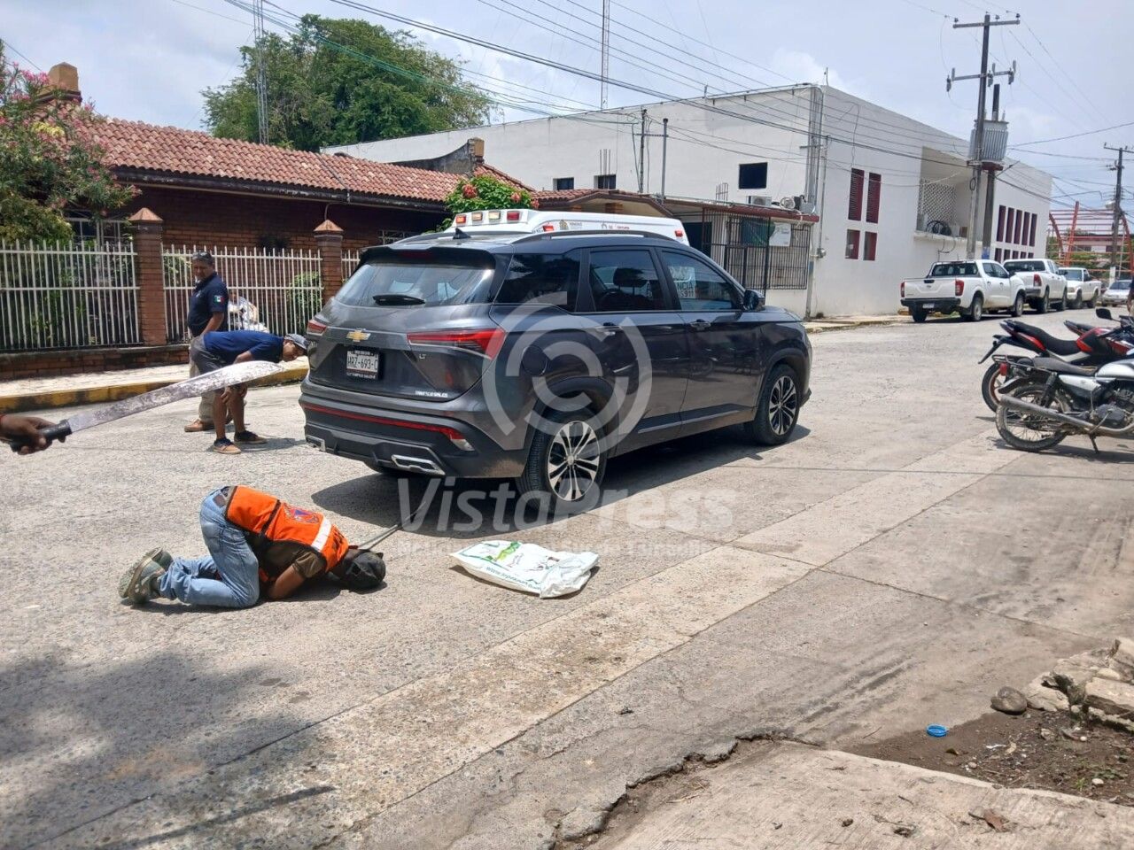 Motociclista queda lesionado tras impactarse contra vehículo compacto