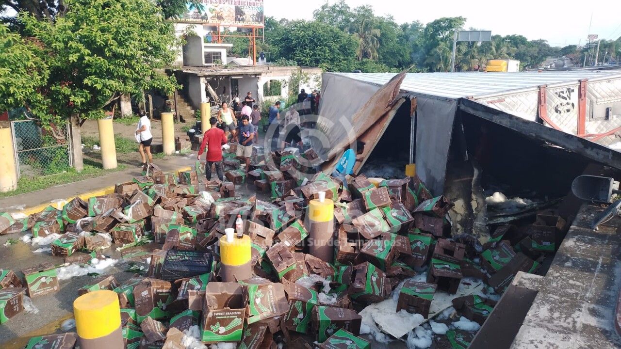 Como siempre aparecen los "rapiñeros" Pueblo Viejo, Ver.- Un tráiler cargado con cajas de "cebollitas en manojos", se volcó de…