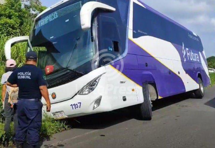 Queda ladeado a un costado de la carretera Chinampa de Gorostiza, Ver.- Un autobús foráneo estuvo a punto de volcarse,…