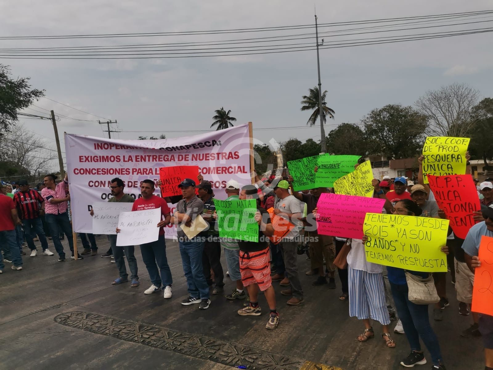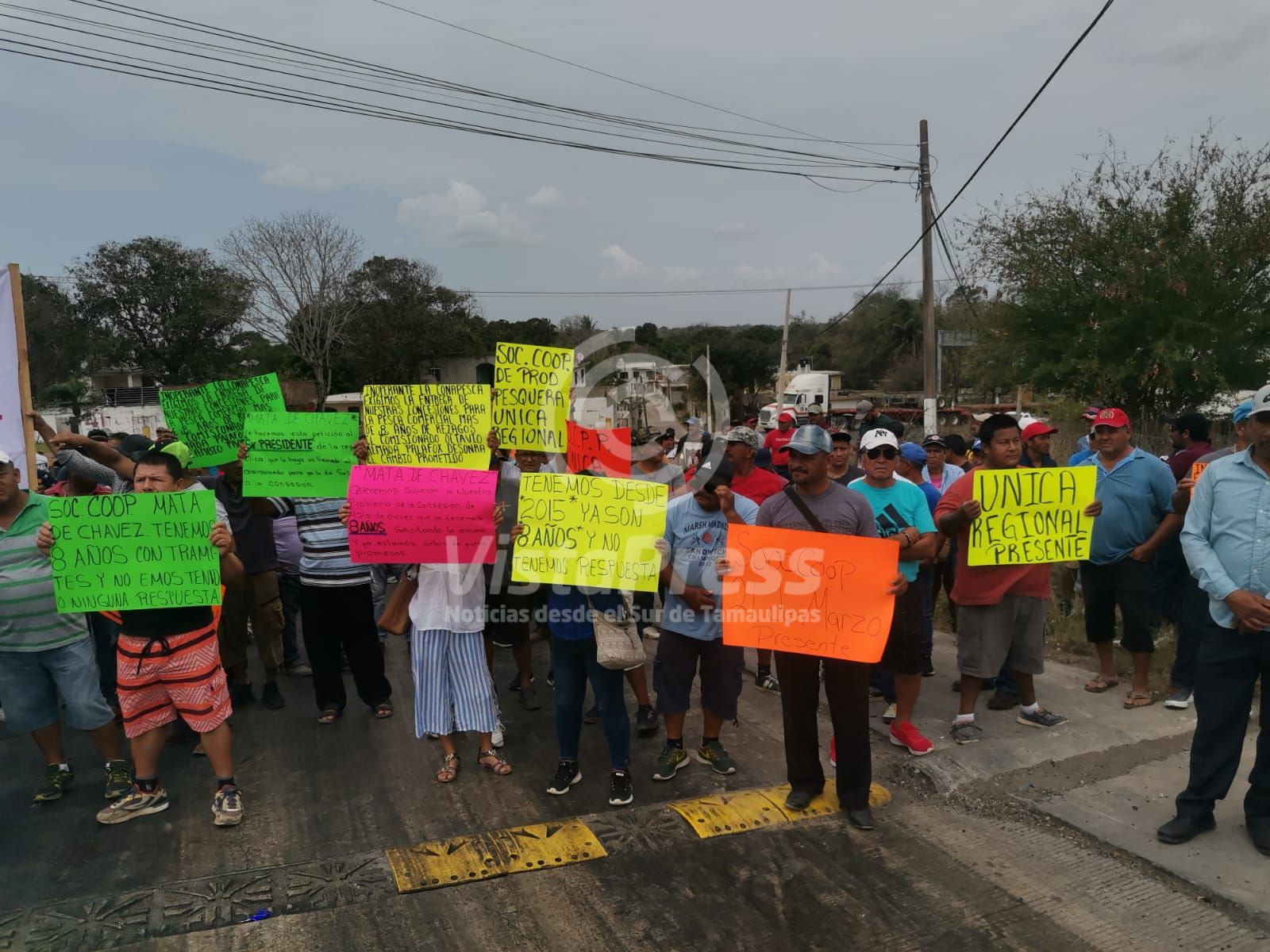 Pueblo Viejo, Ver.- Cooperativistas pesqueros bloquearon el Libramiento Fray Andrés de Olmos, en demanda por la falta de conecesiones que…