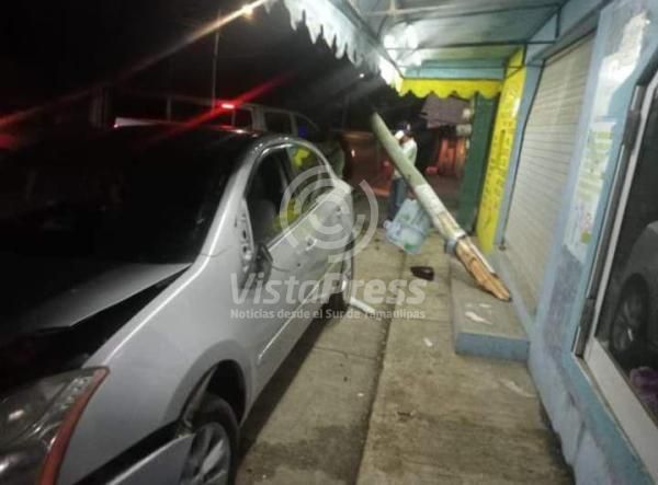 Bólido de arriba poste de madera y termina impactándose contra camioneta