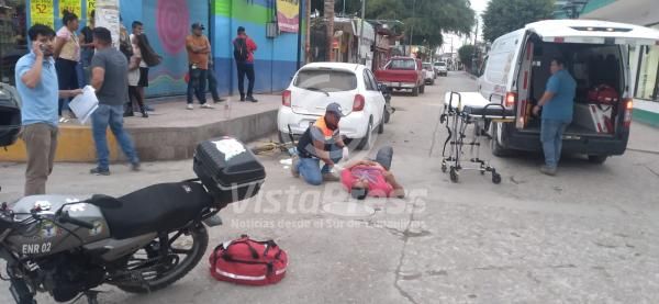 Mujer queda lesionada tras ser impactada su motocicleta